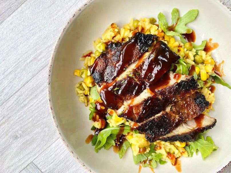 Jump to Recipe – Print Recipe BBQ Pork Shoulder Steaks on Aromatic Rice Prep Time: 5 minutes minutesCook Time: 15 minutes minutesTotal Time: 20 minutes minutes Servings: 4 Delicious pork shoulder steaks on mixed rice salad! Print Recipe Cost per portion 1.59 EquipmentSaucepan + Lidfrying pan 4 MetricUS Customary IngredientsChicken4 pork shoulder steak1 tbsp cajun spices100 ml bbq sauce shop bought15 ml olive oilRice200 g basmati rice or long grain1 pinch turmeric1 chicken stock cube1 tin sweetcorn 200g100 g petit pois50 g rocket Instructions Prevent Sleep ModePrevent Sleep ModePork Shoulder SteaksDust the shoulder steaks in Cajun spice and pan fry on a high heat for 4 minutes each side, then remove from the pan and rest while you cook the rice. RiceWhile the chicken is cooking, add the rice to the saucepan with double the amount of water (e.g. 1 cup rice = 2 cups water) and stir in the chicken…