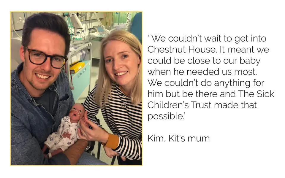 The Sick Children’s Trust gives families with a seriously ill child in hospital a comfortable place to stay and a friendly ear to listen in one of their ten ‘Homes from Home’ – free of charge.
