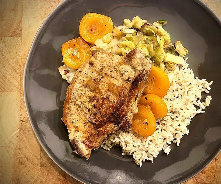 This easy pork chop recipe uses canned apricots for total convenience while not compromising on taste and using lager for the base of the sauce (don’t worry, the alcohol is cooked out). Served with sweetheart cabbage (also known as pointed cabbage).