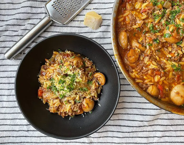One-Pot Bolognese with Orzo / One pot recipe (even the pasta goes in raw) an easy kid-friendly meal You've got great taste! To access this page simply login here log in. Or sign up in less than a minute (and get free meal plans every week) here: Perks at Work, ParliamentHill or Personalisation Membership.