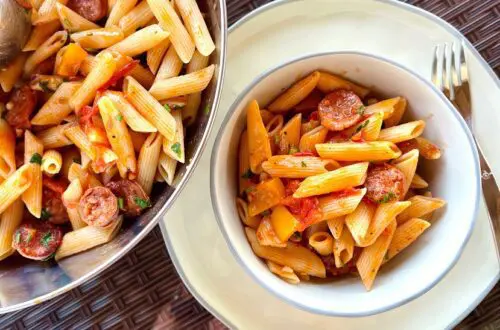 Delicious pork and feta skewers dotted with chopped dates and served with simple green salad. Swap dates for dried apricots or raisins or leave out altogether!